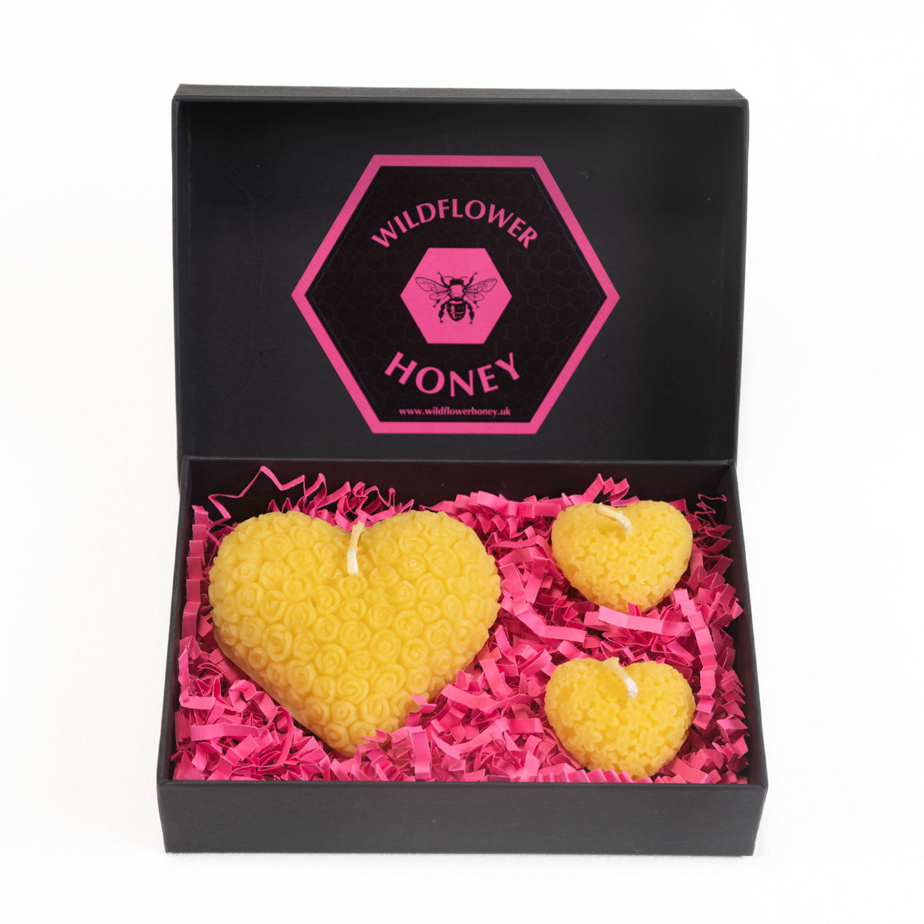 Large & Small Rose Heart Beeswax Candle Gift Set