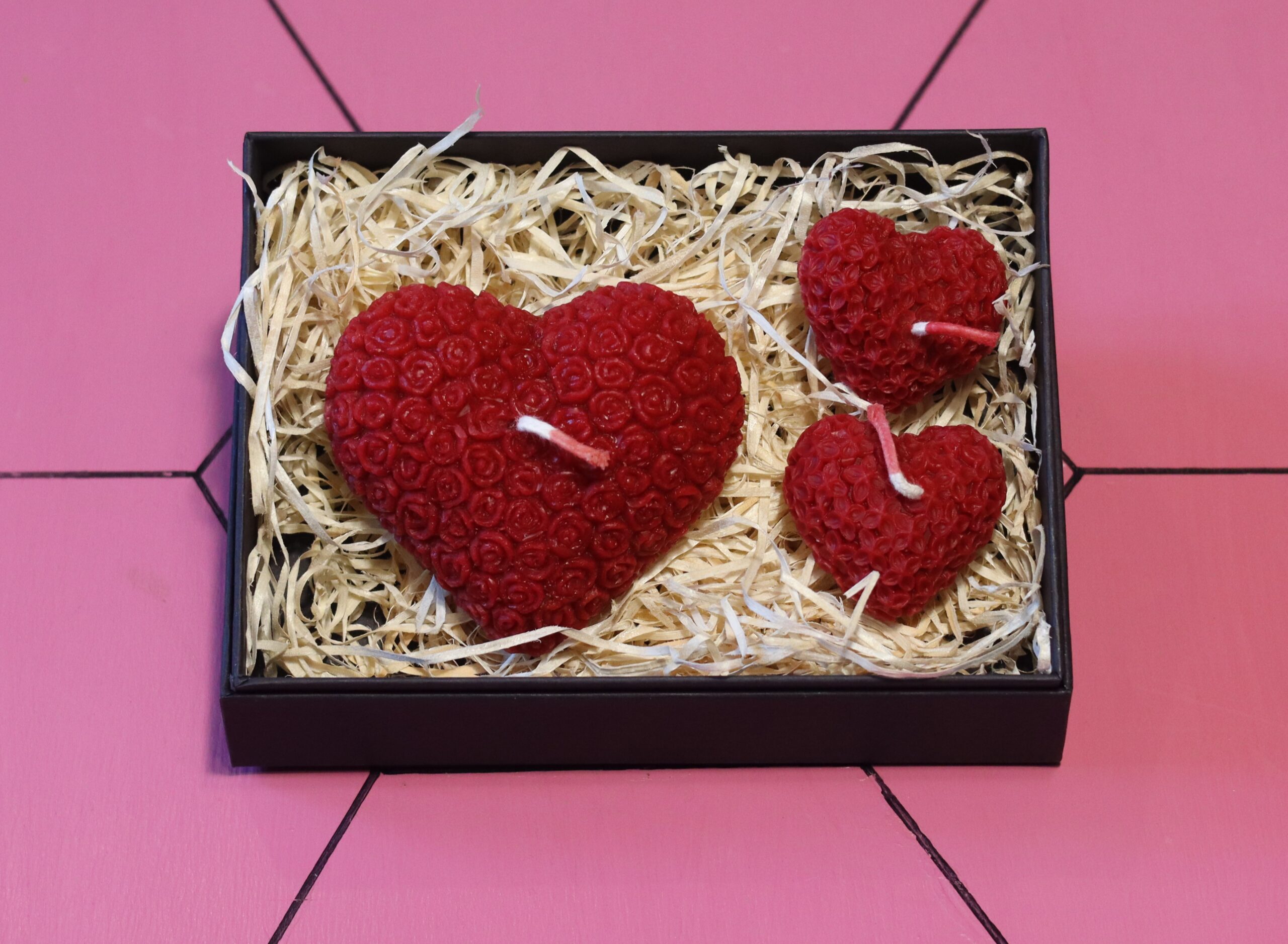 The centrepiece is a Large Red Heart (97g), a bold statement of affection that serves as a stunning focal point for any bedside table or dinner setting. Accompanying it are two Small Hearts (17g each), perfect for scattering around a room to create a soft, flickering glow or for gifting as “thinking of you” tokens.