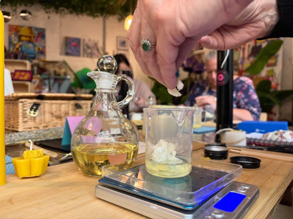 Join us to hand pour candles roll beeswax tapers make a beeswax wrap and craft soothing lip cells to take home.